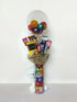 The Bubble Up Treats Vase features a glass vase filled with vibrant metallic balloons. Topping the vase is an assortment of delightful treats, including a cuddly teddy bear, popcorn toffy, Pop Nosh, Kit Kat 4F, Cadbury Dairy Milk, Kit Kat 2F, Hershey’s Nuggets, and Ferrero Rocher. A festive and sweet surprise that combines joy and indulgence.